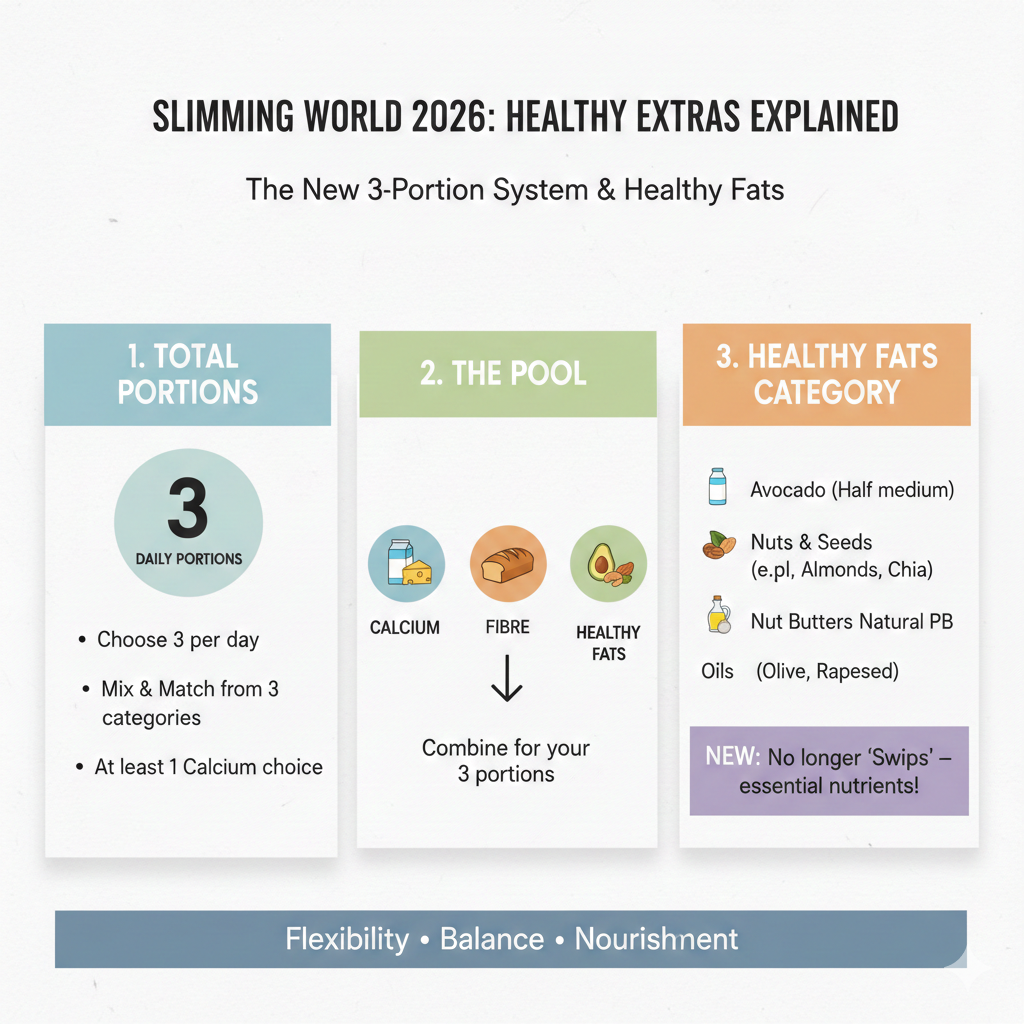 - Healthy Fats (New for 2026) Specific portions of avocado, nuts, nut butters, seeds, or oils (like olive oil).